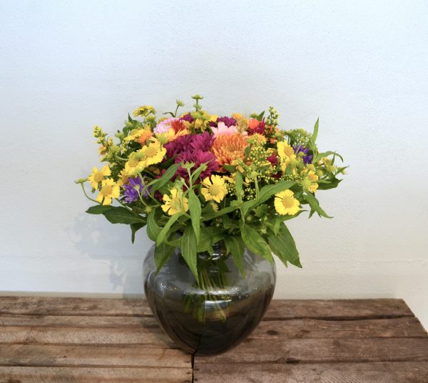 Billedet er et eksempel på en buket, og i den buket, der bindes til din modtager, kan enkelte blomster variere - men udtrykket vil ligne billedet, og størrelsen vil matche den størrelse, du vælger.