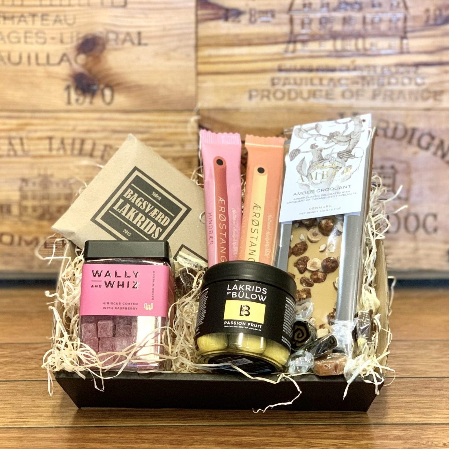 Vi laver smukke gavekurve fyldt med lokalt øl, vin og lækkerier – perfekte som firmagaver eller til en, du vil forkæle.