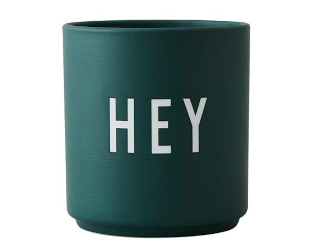 Design Letters favoritkop i Fine Bone China porcelæn er en skøn gaveidé. HEY favoritkop er en skøn kop, i den flotteste grønne farve. Brug koppen til drikkelse, blyantholder, vase eller opbevaringkrukke. Design Letters porcelæns har bogstaver laserindgraveret i koppen.