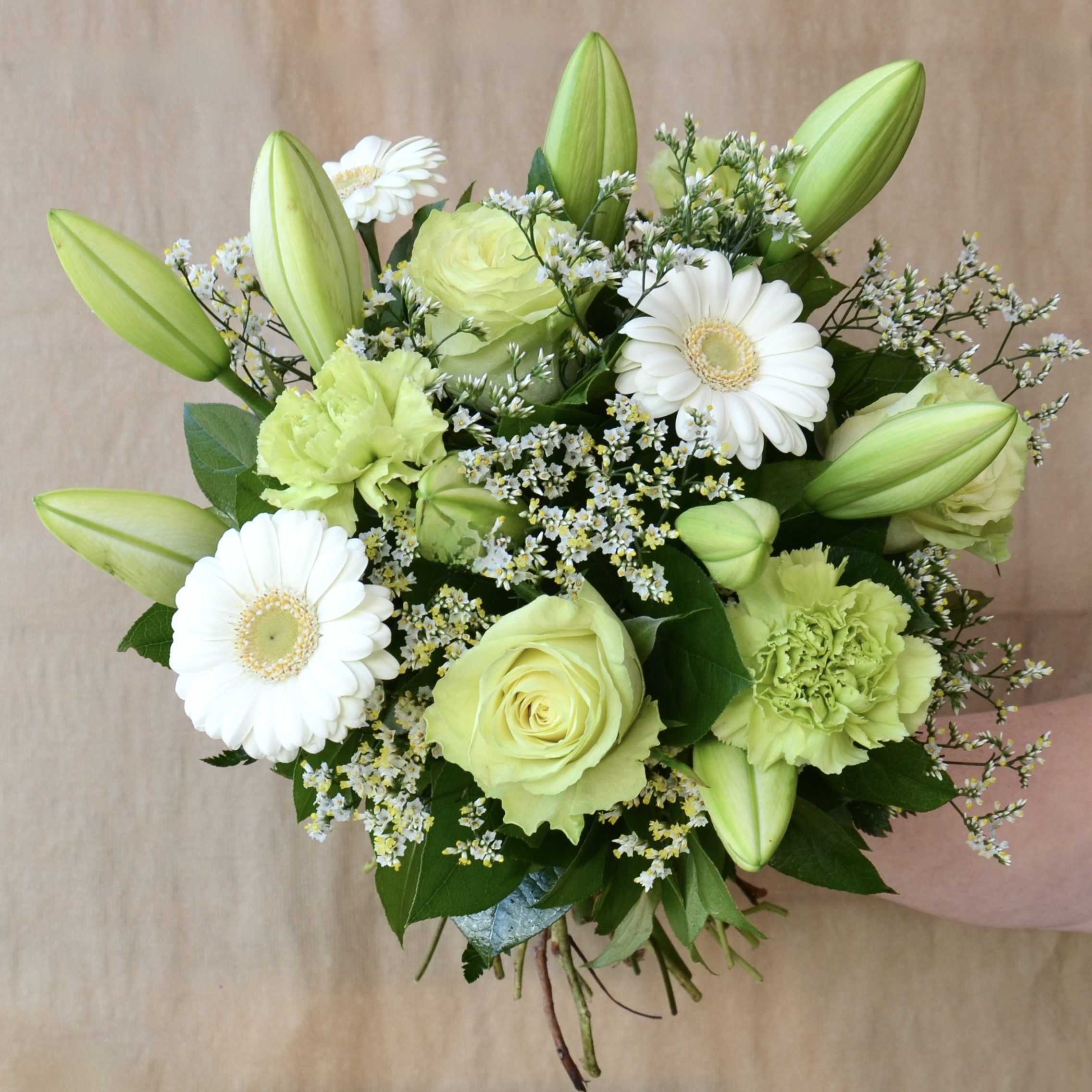 Høj og elegant hvid buket