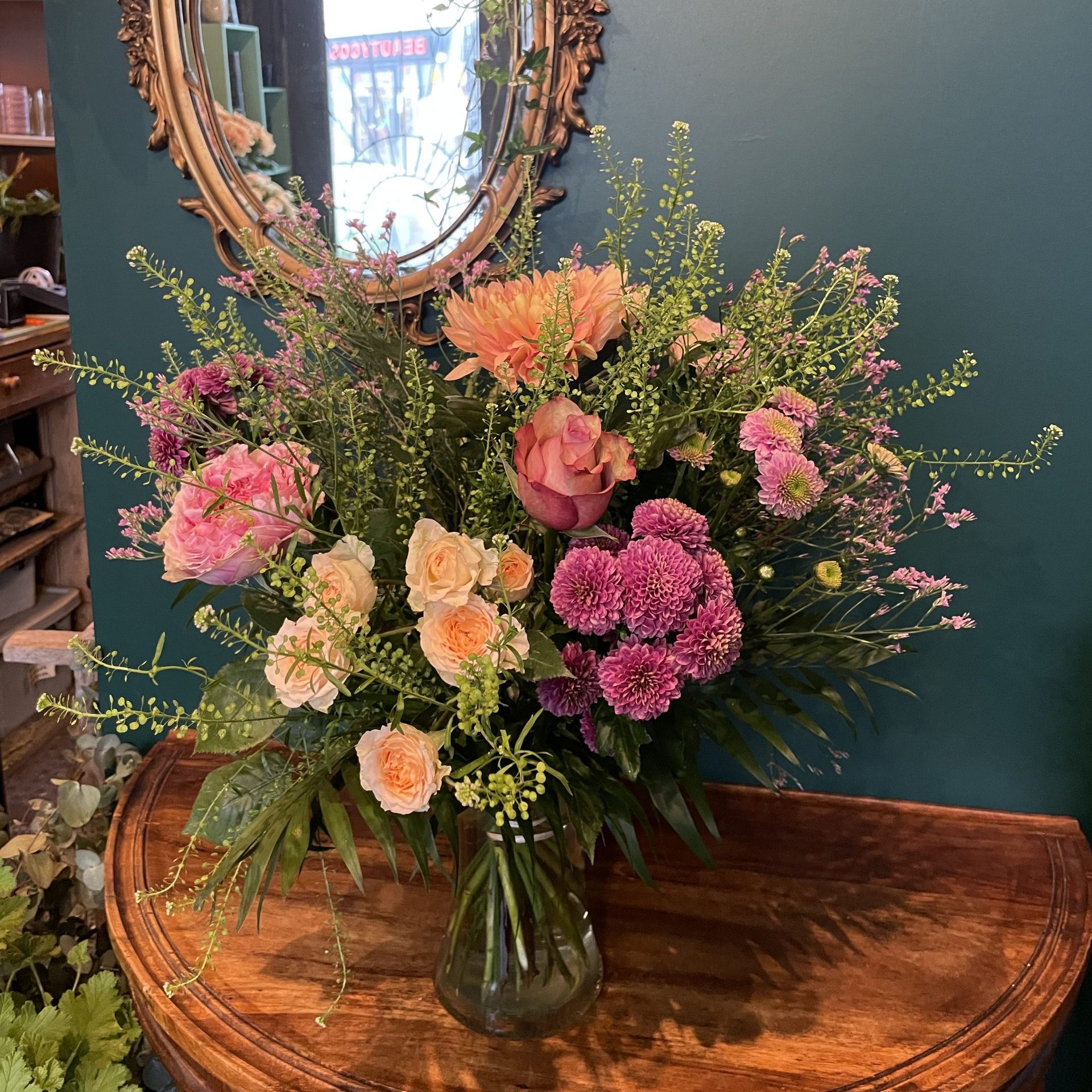 De enkelte blomster og farver kan afvige fra det viste eksempel da vi altid udvælger dagens flotteste og mest friske blomster.