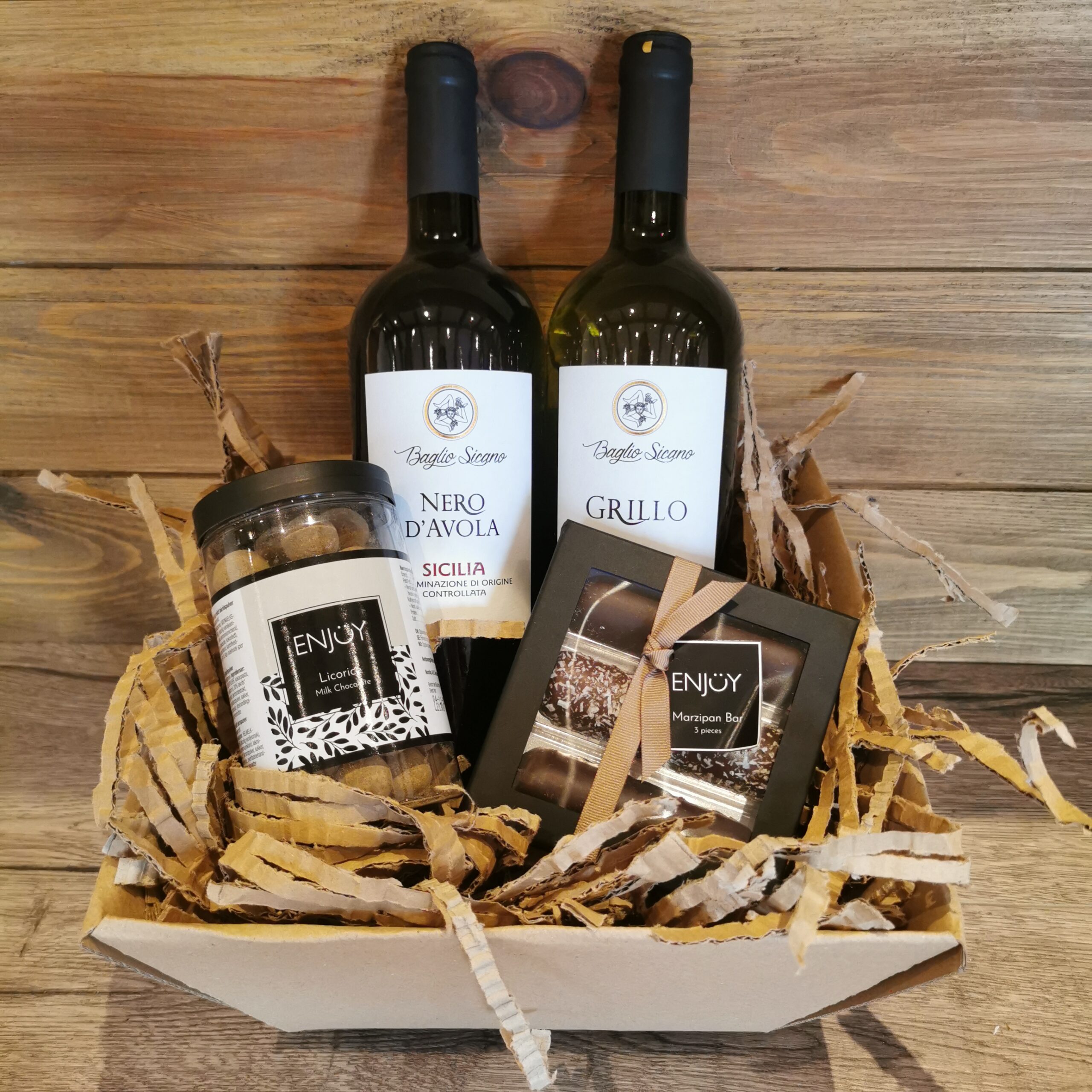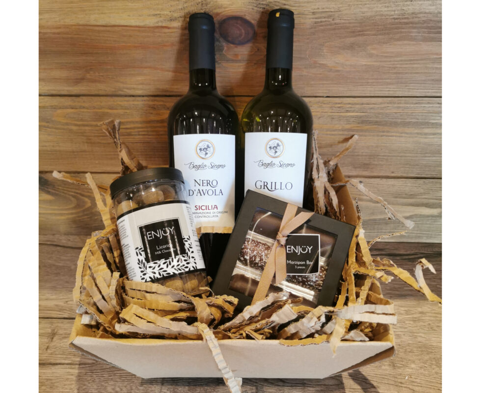 Indeholder 2 flasker god italiensk vin – en rød og en hvid